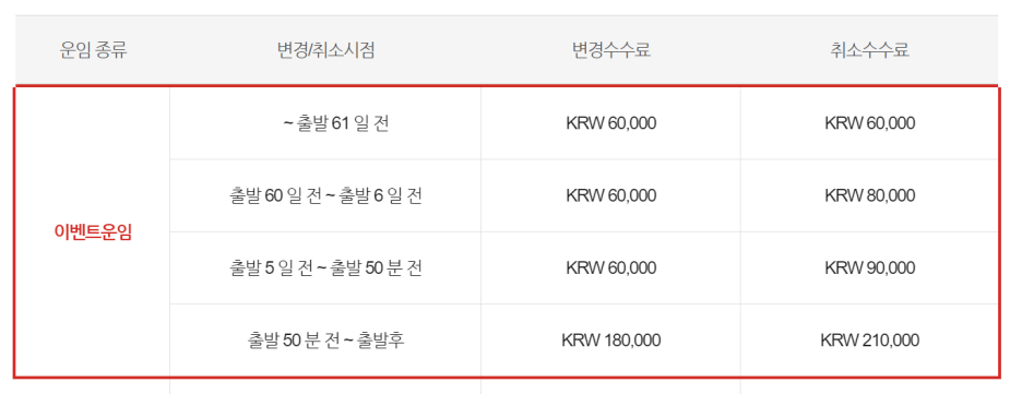 취소수수료는 60,000원 부터