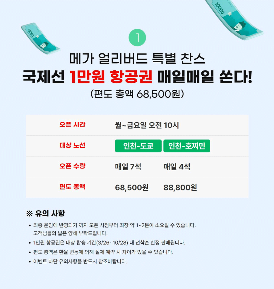1만원 운임 항공권 특가 오픈을