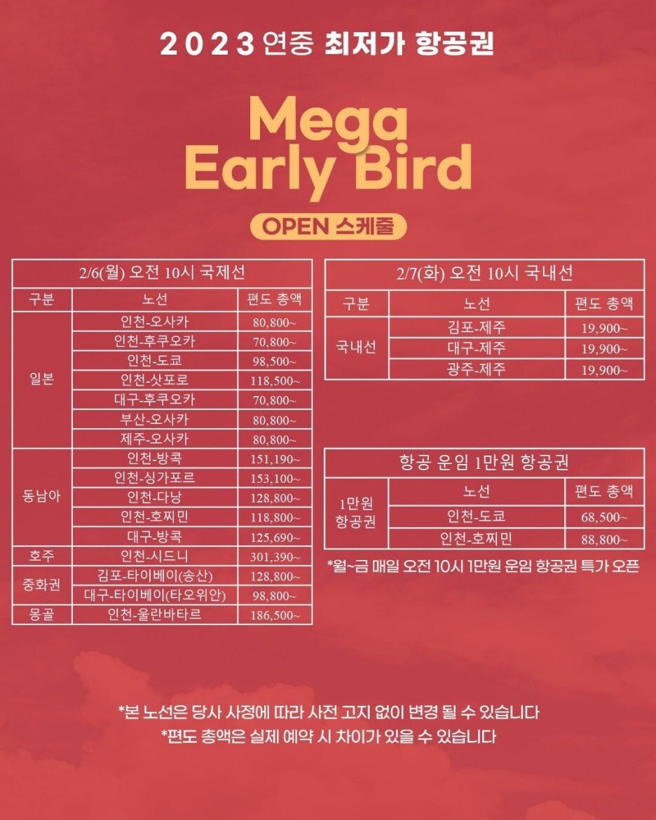 티웨이항공 메가얼리버드